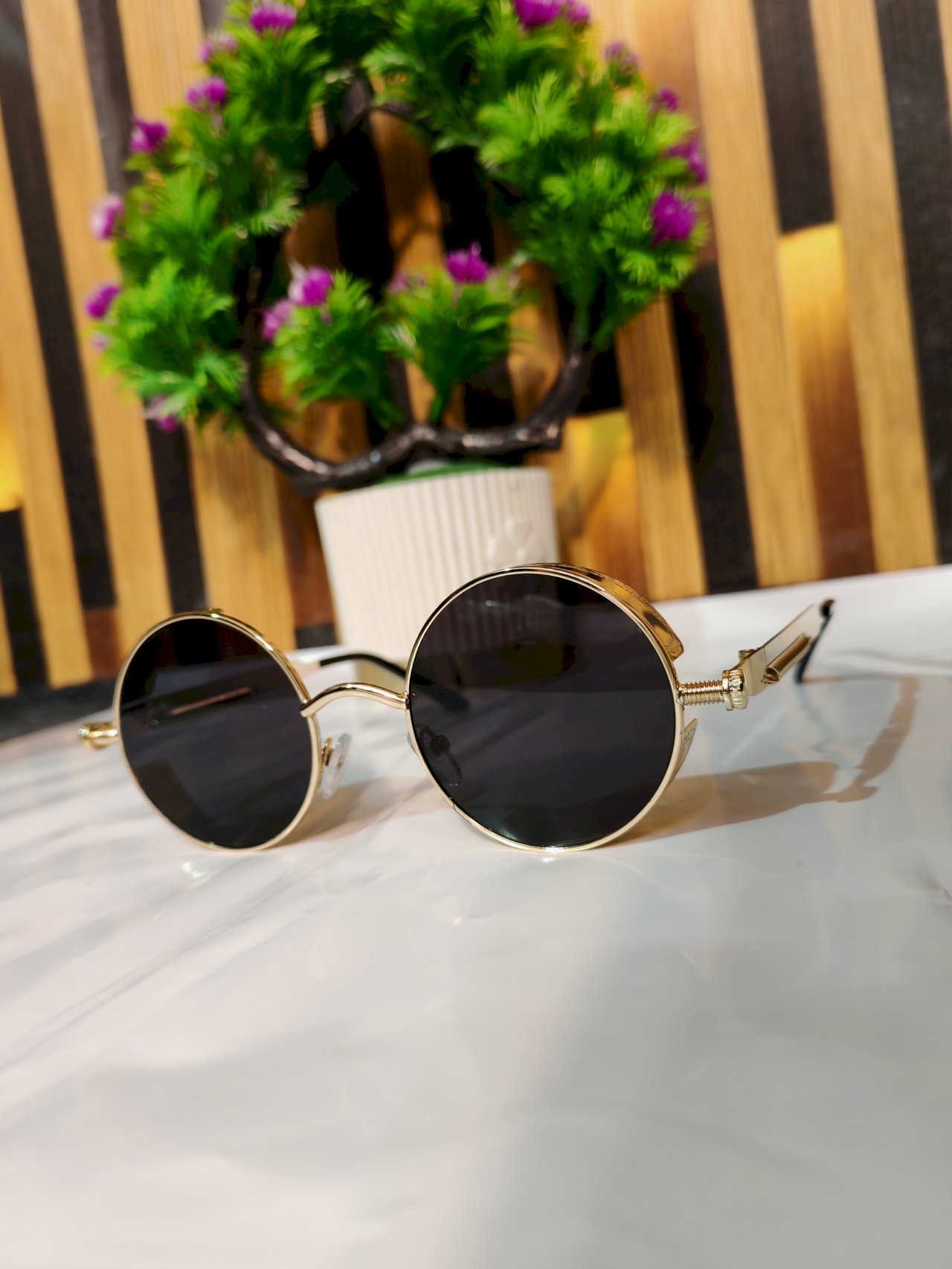 slider-bg Round Metal Sunglasses Steampunk Men Women Glasses Brand Designer Vintage Sunglasses